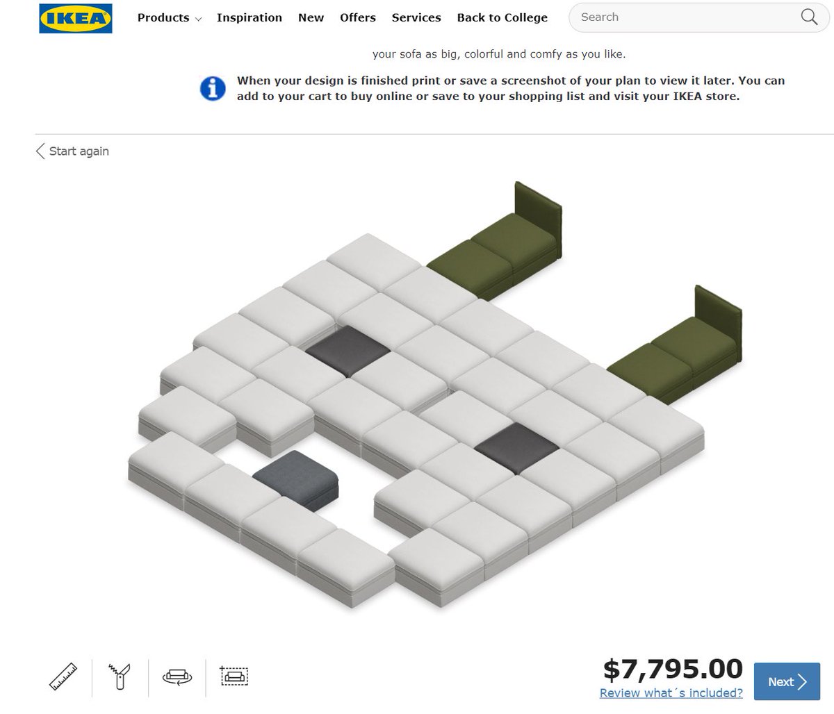 當大家要買家具時,常常會想到去「IKEA」購物、甚至假日閒來無事也會帶著小孩去走走,吃吃冰淇淋。但鮮少有人知道,IKEA官網上有著超貼心的「DIY模擬設計」功能,可以在網頁上將沙發擺放成自己想要的樣子,而這個功能日前被國外的網友玩壞了…