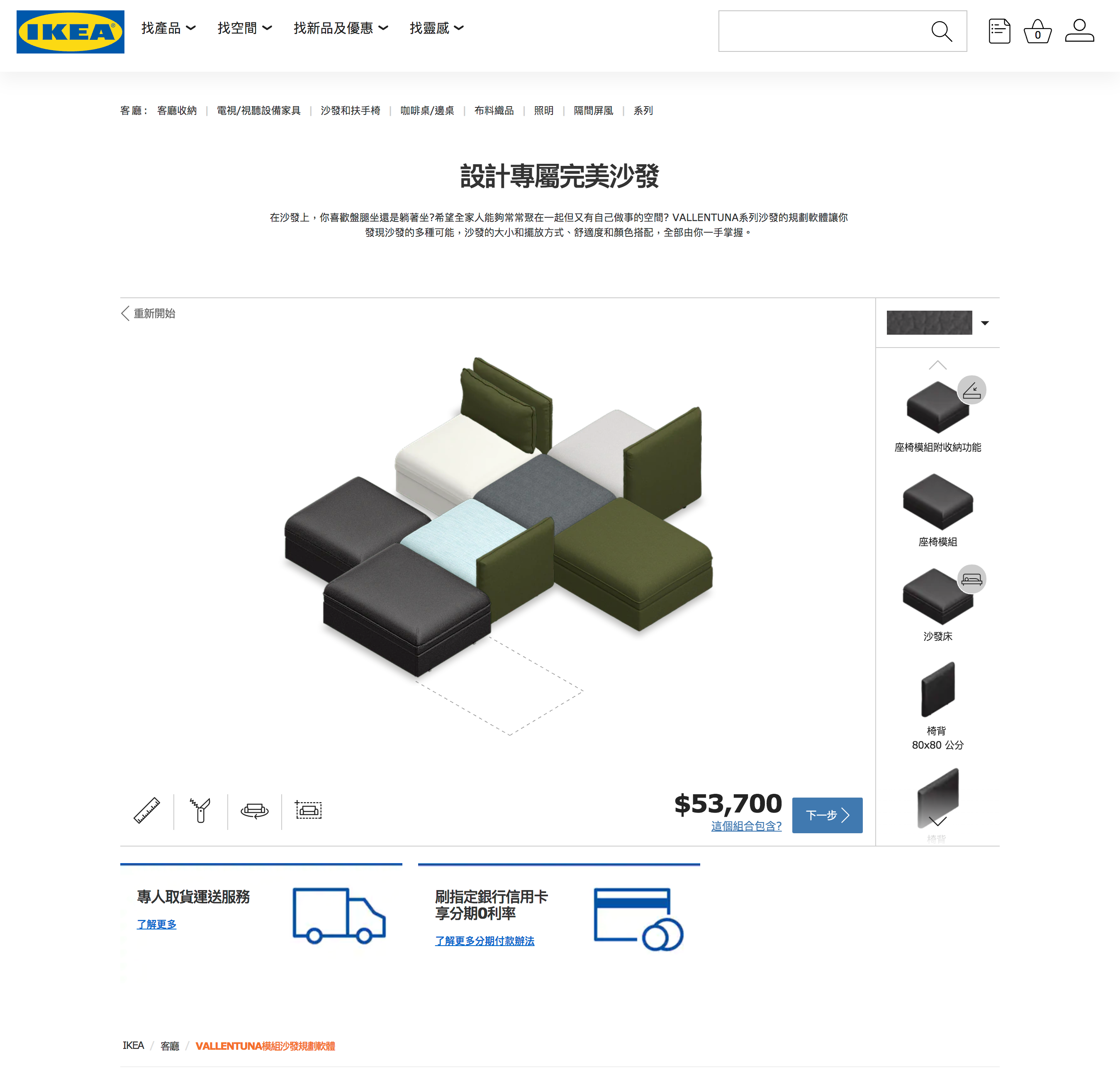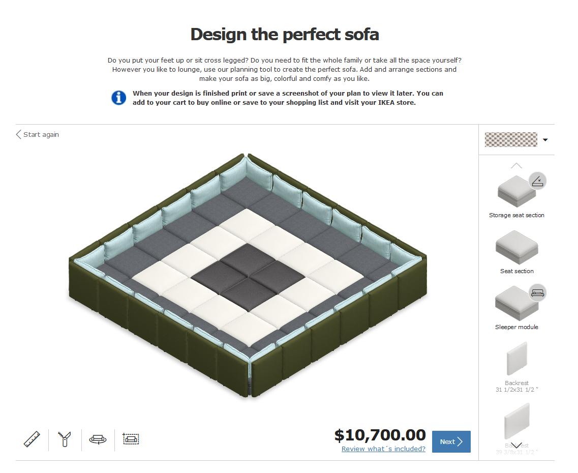 ▼IKEA官網有一個「模組沙發規劃軟體」,用戶可以在網頁上模擬擺放沙發,設計專屬完美沙發,還會直接運算價格,非常貼心。