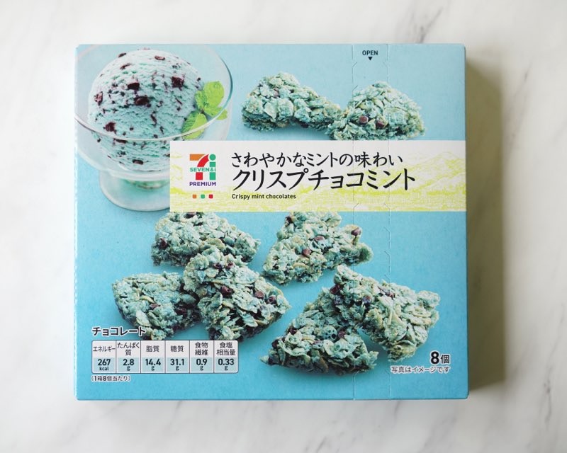 ▼薄荷巧克力脆片:日本小七也不讓全家專美於前,推出「薄荷巧克力脆片」,以香濃的薄荷巧克力將酥脆的玉米片包裹起來,清爽涼脆的口感與味道很適合在大熱天品嚐。