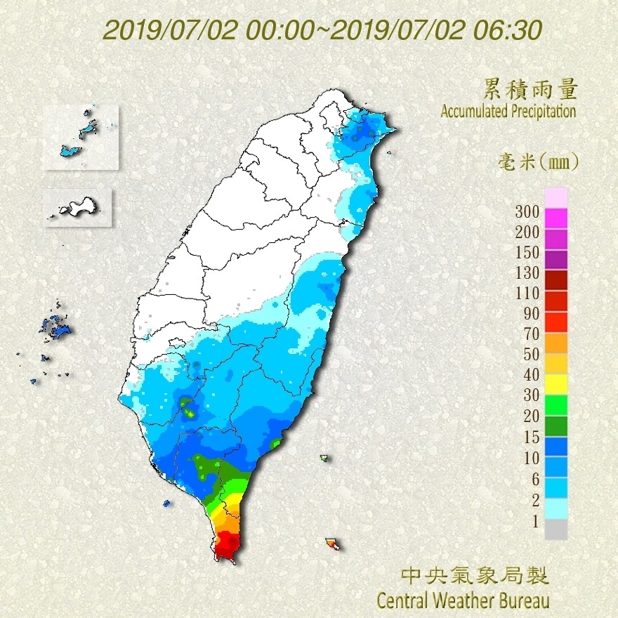 ▼氣象局也預測,7月2日晚上開始將全台有雨,狀況會維持到7月3日早晨8點。