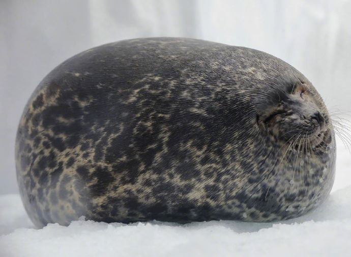 2019年07月02日海豹身材圓滾滾,表情超呆萌,是很多動物園中最受歡迎的明星。日本大阪海遊館中的環斑海豹Yuki就紅遍網路。胖乎乎的牠本身就很可愛,與飼育員的互動更是萌化人心。不少網友大呼:「這是一顆芝麻大福嗎?!」