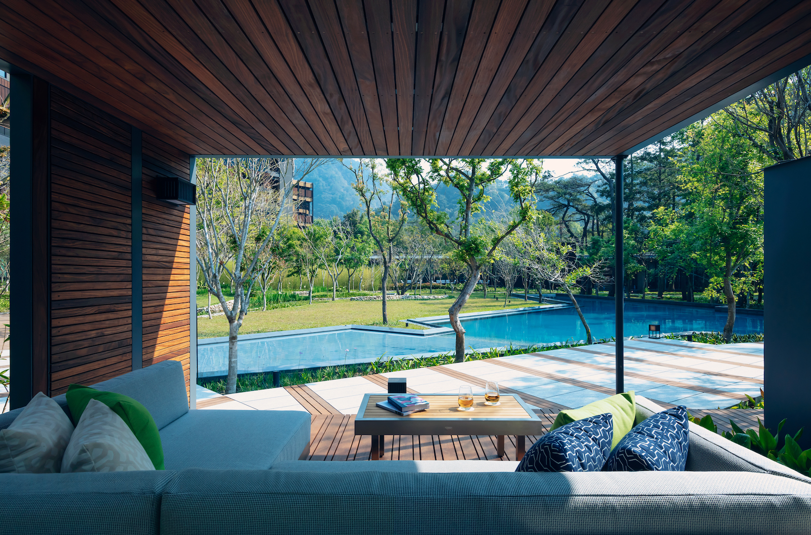 ▼「虹夕諾雅 谷關」中四處都適合駐足停留、歇息一下,享受春時櫻花盛開、秋時滿谷楓紅,讓生氣勃勃的自然環境浸潤住客的每一吋肌膚、自然而然地拋卻都市裡的喧囂煩惱。
