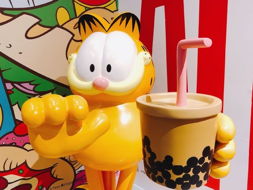 ▼展覽中到處都有超好拍的加菲貓公仔,總共有20隻巨型公仔以及滿滿的橘貓彩繪,還有結合台灣小吃的加菲貓公仔絕對是必拍打卡點!拿著珍奶的模樣實在是太可愛了~