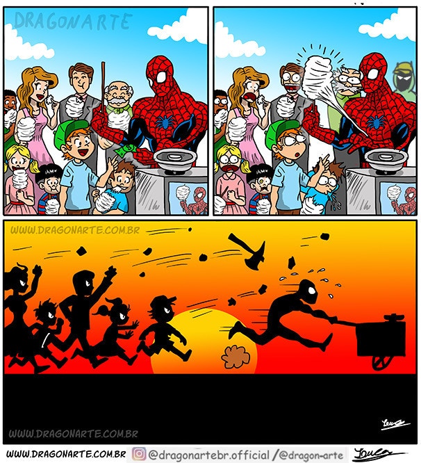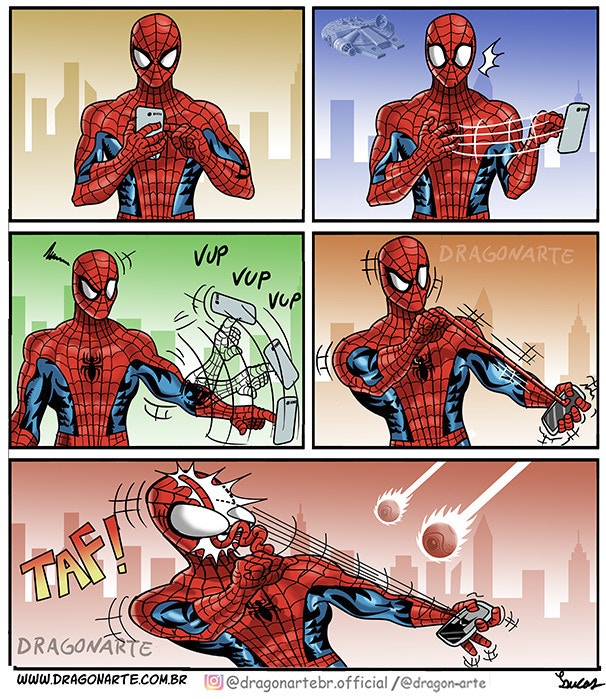 之前《復仇者聯盟4:終局之戰》在全球掀起觀影熱潮,如今《蜘蛛人:離家日》又來啦。這可是MUC輝煌11年的階段性完結篇,粉絲們千萬不要錯過。國外藝術家Lucas Nascimento很擅長創作以超級英雄為主題的插畫,一起看看他腦洞大開的「蜘蛛人貧窮生活日常」吧。