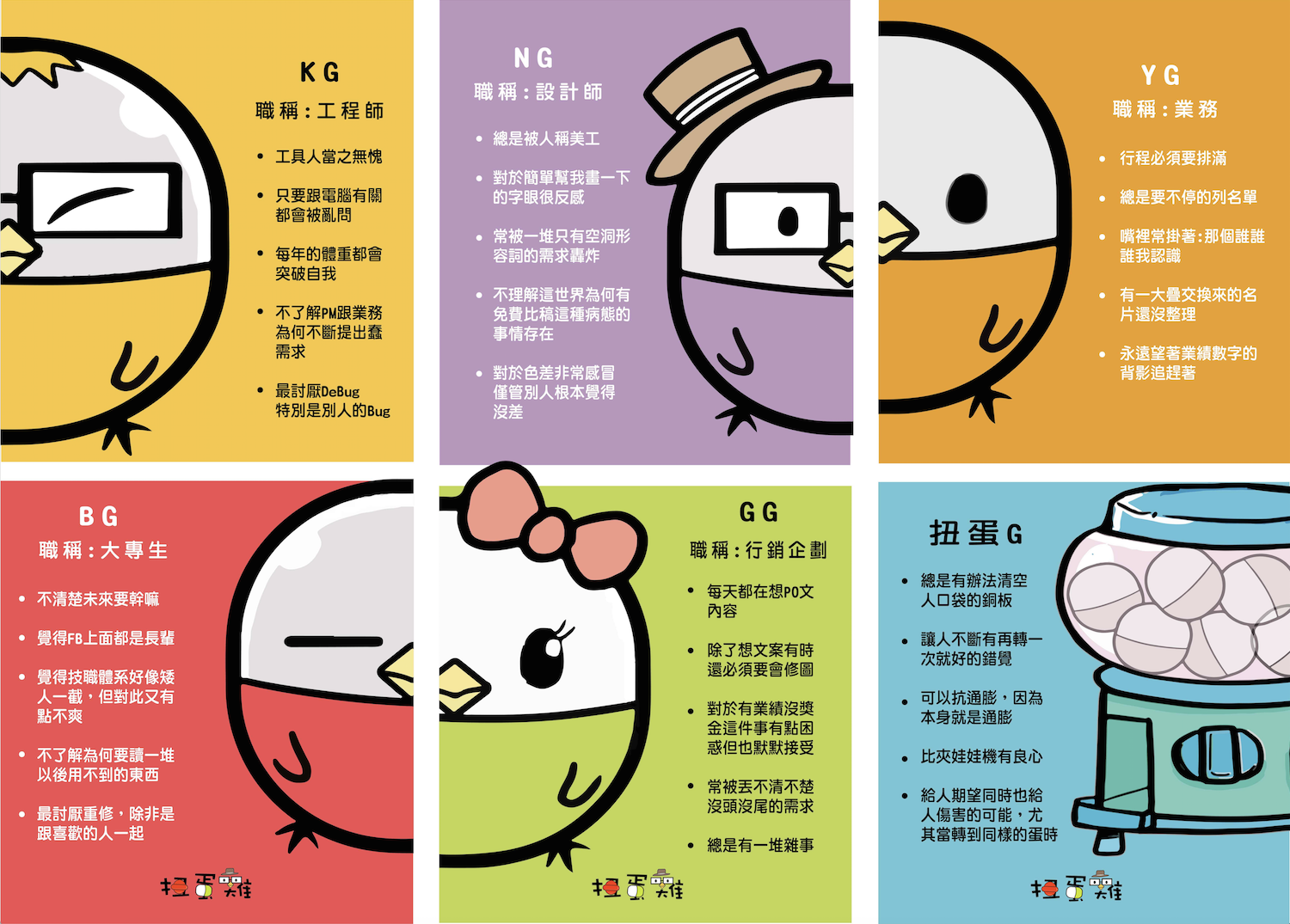 ▼「扭蛋雞」角色IP將扭蛋潮流文化漫畫插圖化,以詼諧的筆觸描繪5隻「扭蛋雞們」在扭蛋世界裡的趣味生活與奮鬥故事,你是屬於其中哪一種呢?