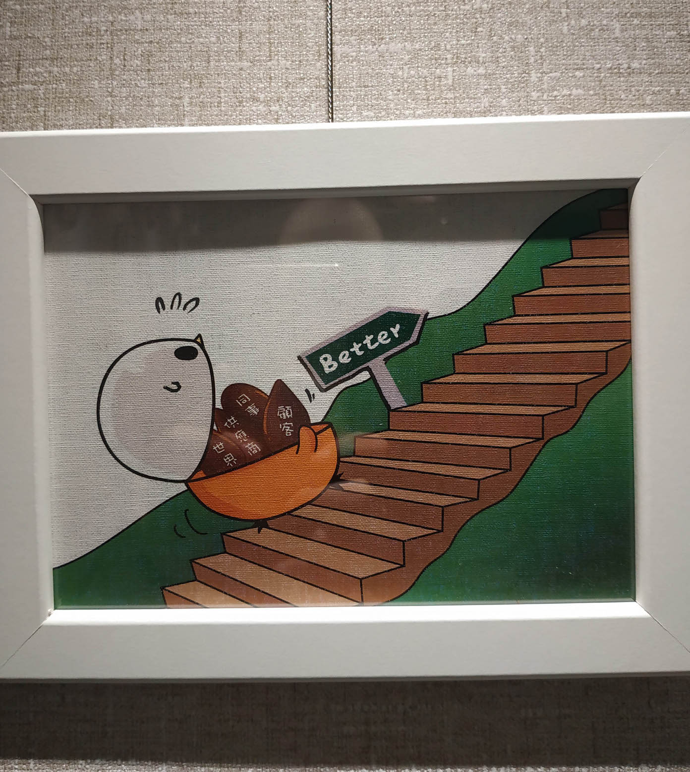一個展覽的最後如果收穫只有手機裡的照片,那麼不免可惜,在扭蛋雞的作品裡圍繞著成長、省思、與幽默,只要處處留心,凡是皆有「雞」可尋,在出了展覽門口或許能讓你的世界重「心」啟動。