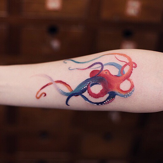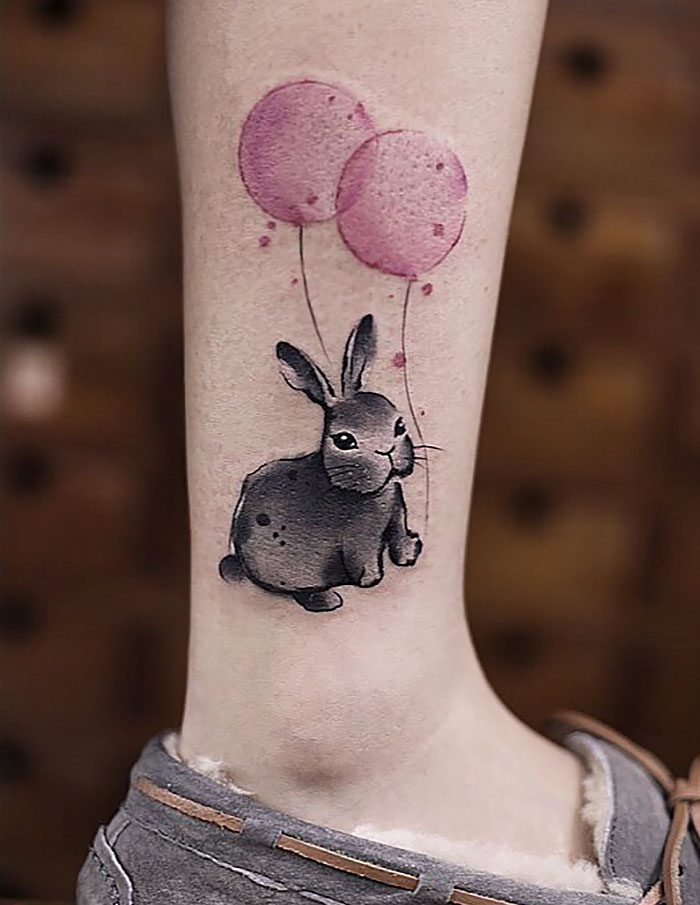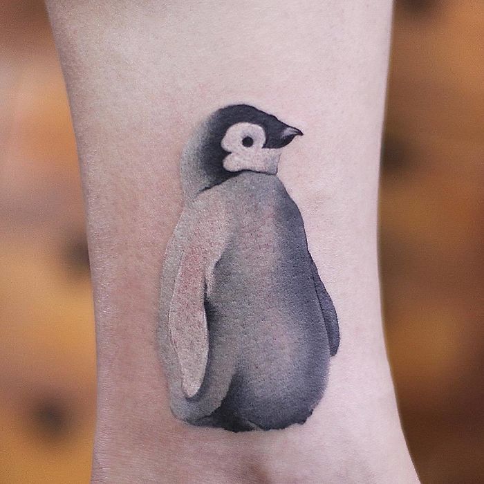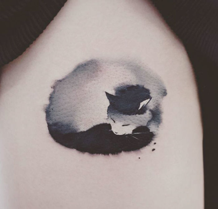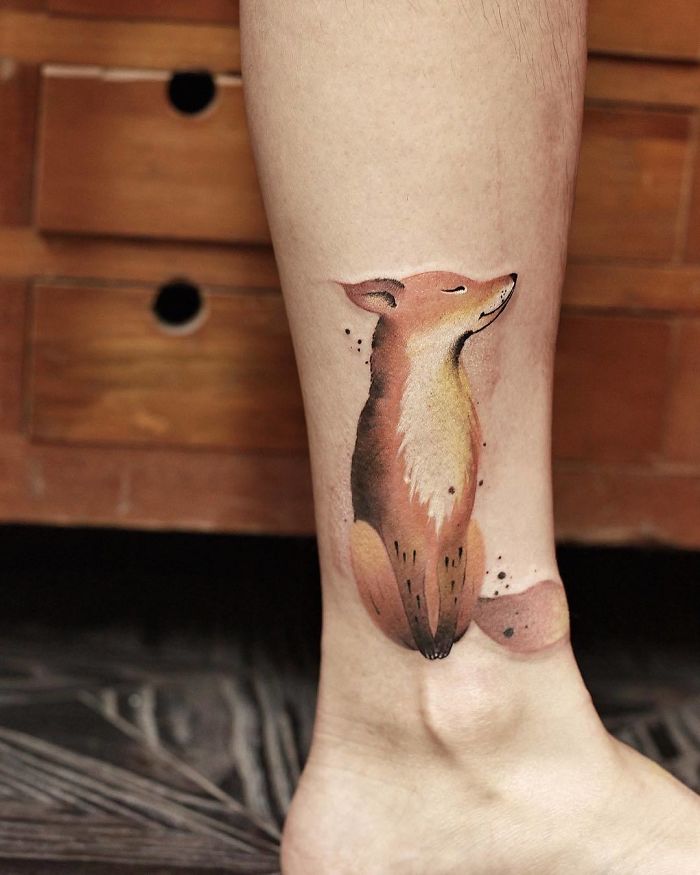 ▼​陳潔風格多變,這種可愛的刺青也是信手拈來。原本就很可愛的動物加入水墨畫的效果,顯得很有質感。