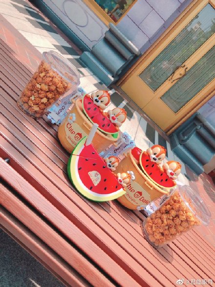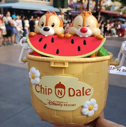 ▼上海迪士尼推出限量奇奇與蒂蒂造型米花桶(人民幣208元/個,約新台幣941元),看他們倆一臉爽樣的在吃著西瓜,瞬間感覺天氣也變涼了呢~