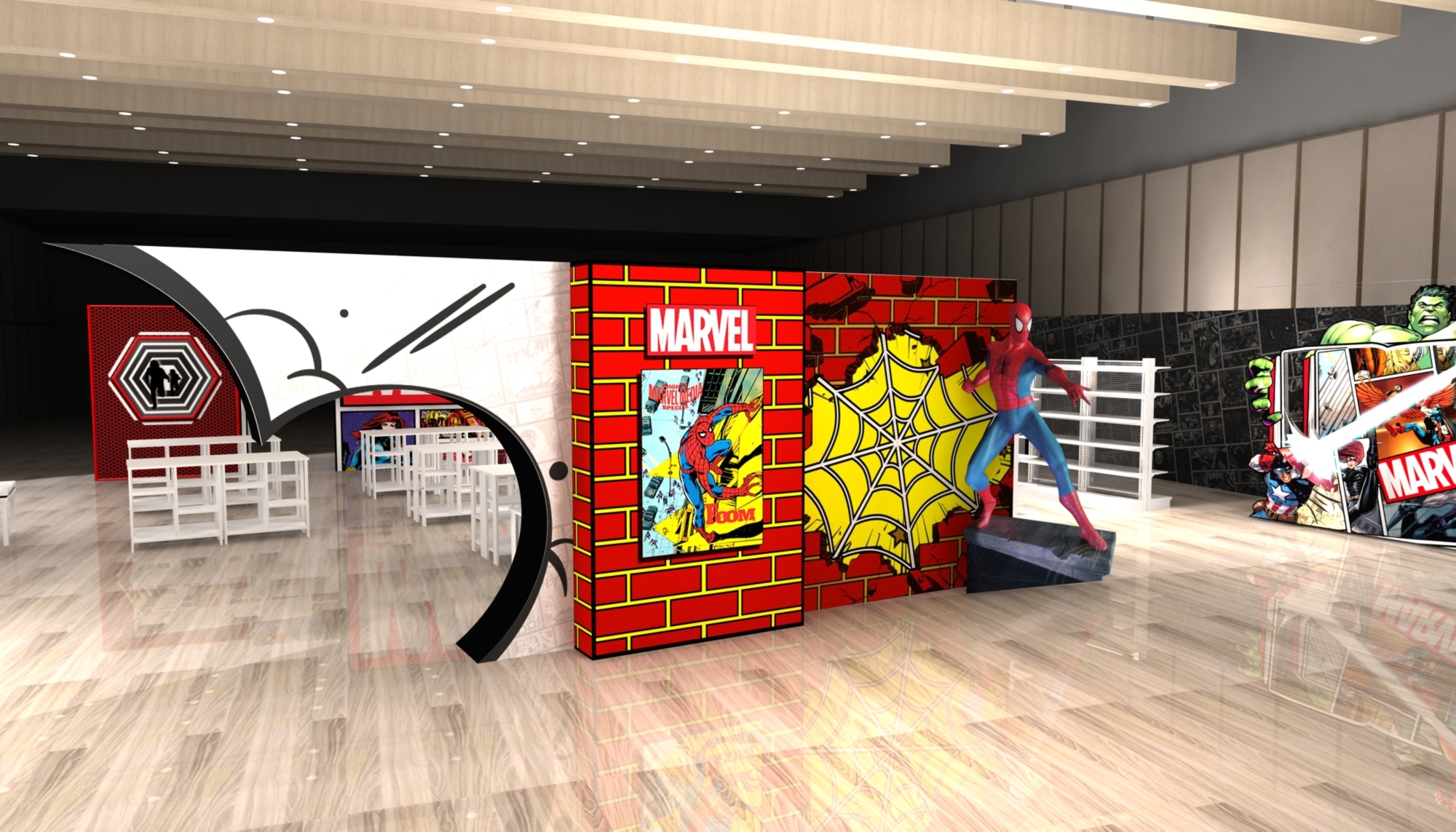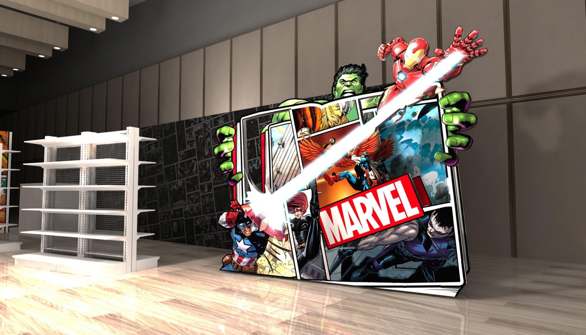 ▼1.最新熱門打卡點:快閃店以漫畫風格快閃點結合漫威「3D地貼」,隨處可見鋼鐵人飛天、浩克發飆等場景,彷彿走進真實版的漫畫世界,讓人彷彿真的置身漫威宇宙,每個角落都超欠拍!