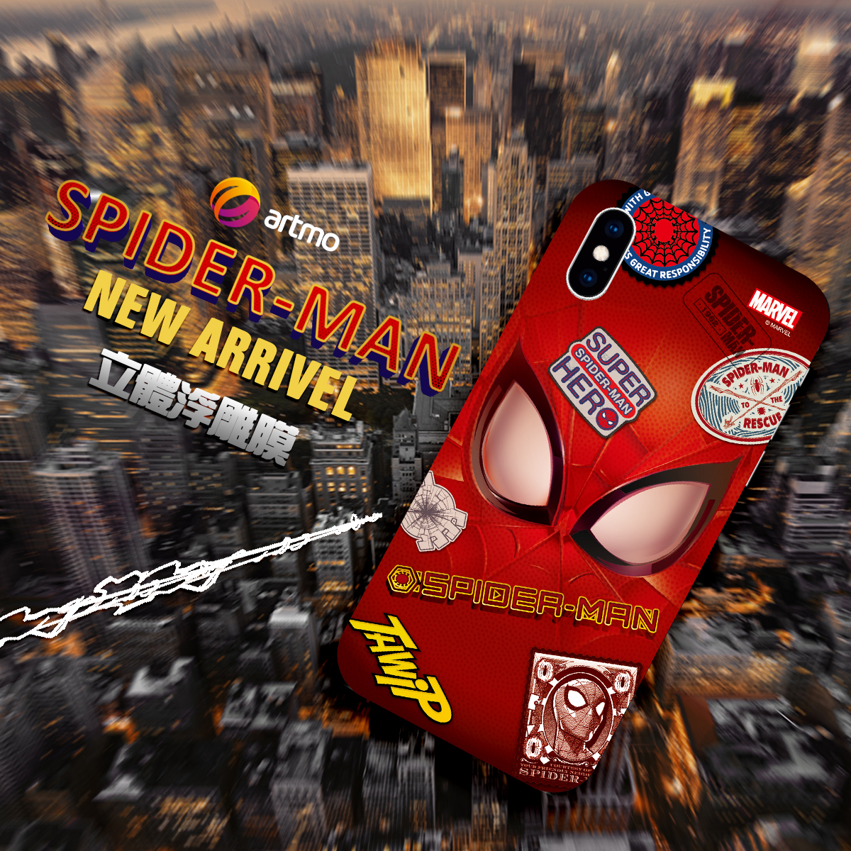 ▼5.鐵粉站出來!電影票根享優惠超值購:快閃店開幕期間,只要憑《蜘蛛人:離家日》電影票根,便可以優惠價買到英姿颯爽的蜘蛛人手機指環扣、蜘蛛人滑鼠墊;而7/12開幕當天,只要穿戴漫威英雄系列任一種服裝參加快閃活動並拍照打卡,就送80週年晶鑽閃卡貼(一套5款)!