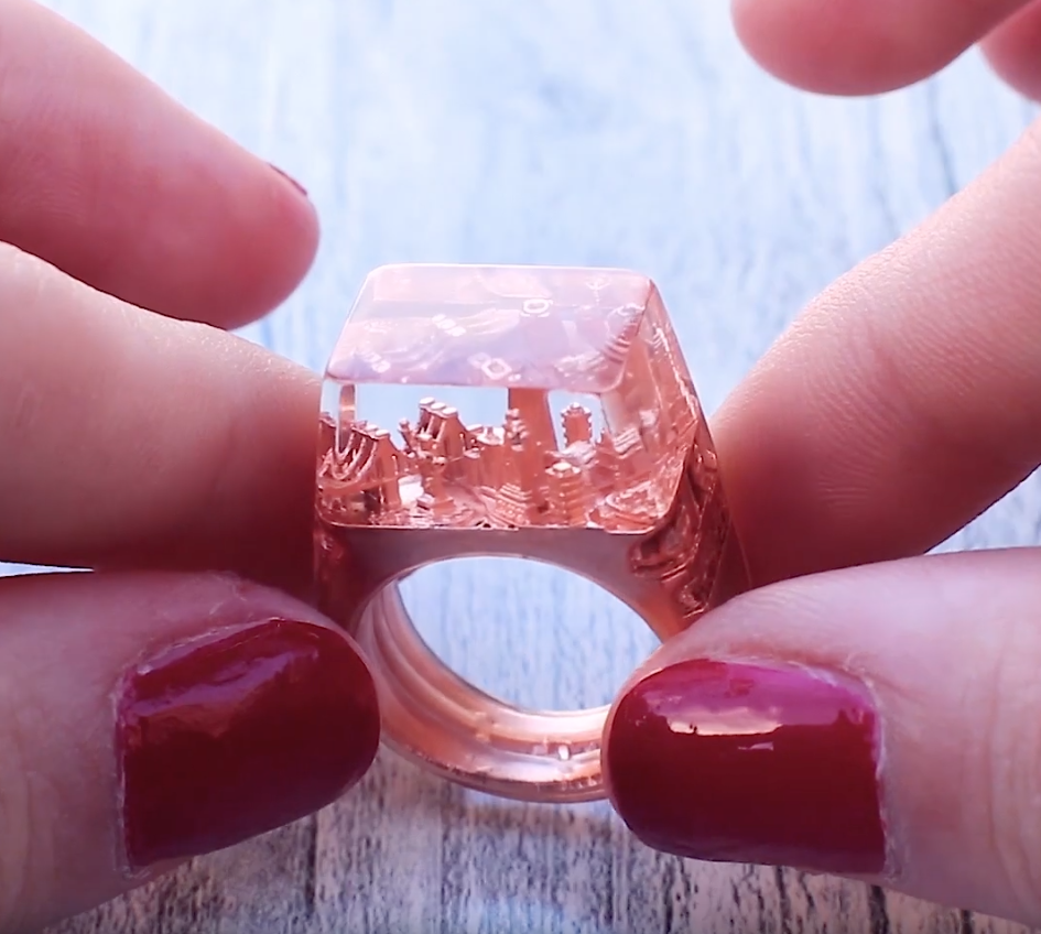 誰說戒指就一定只能放寶石?放上一整座城市反而更吸睛!只要有創意,不管是什麼都可以放到戒指裡,做出一個獨一無二的創意作品啊!