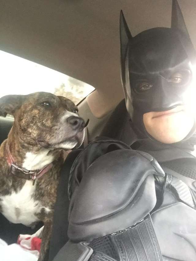 2019年07月08日在漫畫和電影裡,蝙蝠俠是懲奸除惡的英雄,但現實中也有這樣的英雄存在。美國一位男子打扮成蝙蝠俠的模樣,幫被領養的流浪動物抵達牠們的新家,他的好心腸同樣令人尊敬!