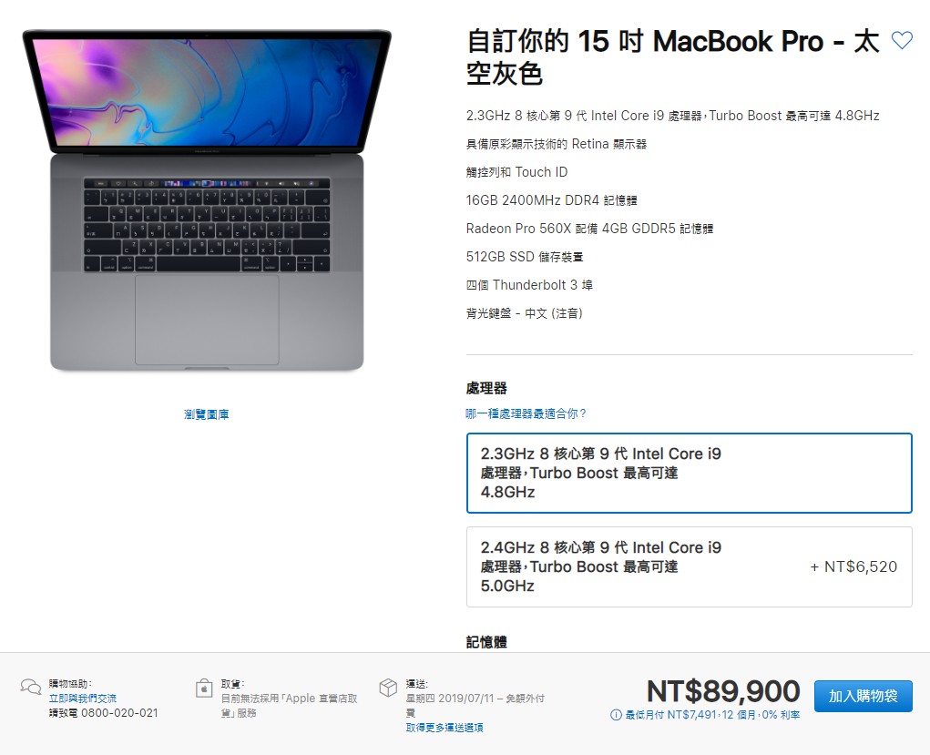 ▼消費者也可以自行選擇是否要升級處理器、記憶體、硬碟容量、加購專業軟體等,當然這也考驗著消費者的口袋深度。以15吋的 MacBook Pro 為例,想要將處理器升級至2.4GHz,就必須加付6520元!