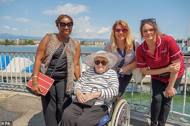 ▼他們與倫敦的盧頓機場(Luton Airport)聯繫之後,讓 Gladys 搭飛機從倫敦飛往瑞士的日內瓦湖,而在機上 Gladys 也受到了 VIP 般的待遇,她不僅獲得了一杯免費的香檳,機組人員也紛紛出來與她拍照留念。