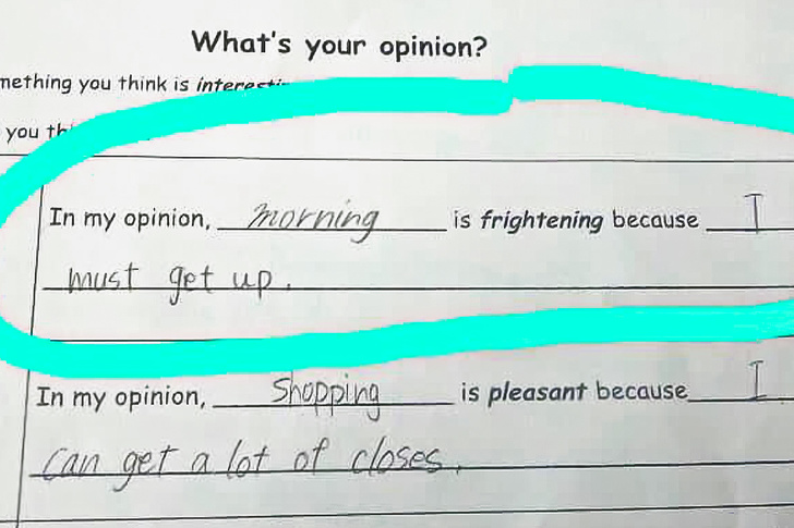 老師看到這些小朋友的作業簿,應該很無奈吧。他們只是從另一個角度答題而已,根本不算錯。與一模一樣的標準答案相比,這些創意十足的回答反而更好呢。