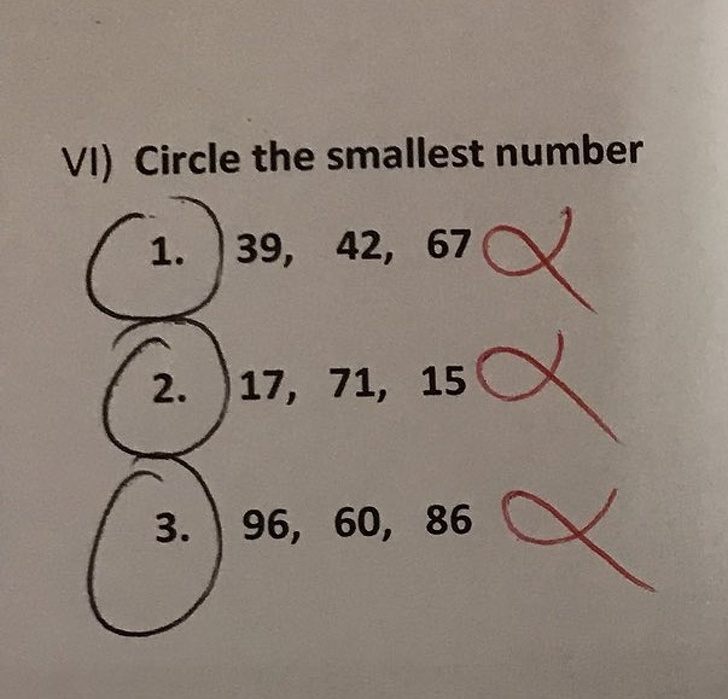 ▼問題:把最小的數字圈起來。