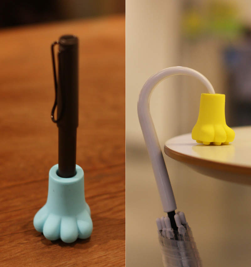 ▼雨傘使用過後,只要套在肉球雨傘腳套就能讓雨傘立地,然後地上就會蓋出可愛腳印囉!
