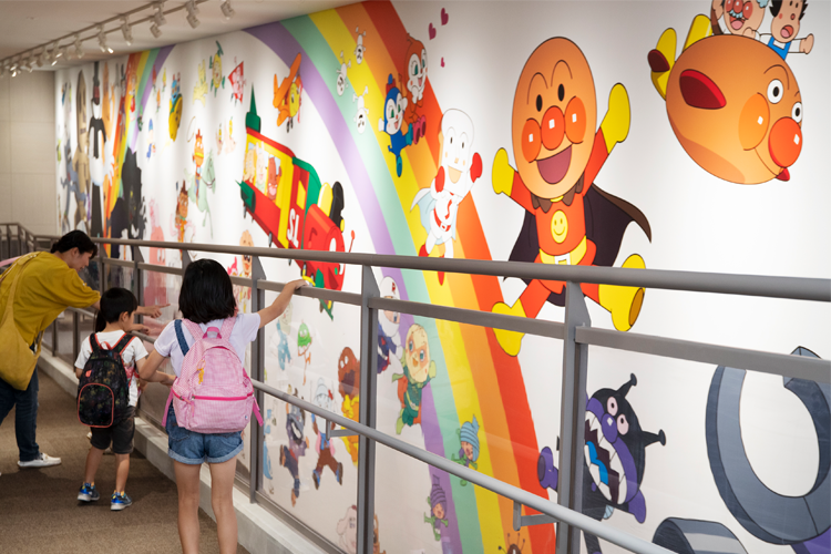 ▼這面超大彩繪牆,牆上畫滿了曾在麵包超人裡登場過的角色們。