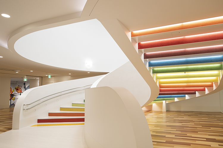 ▼新的麵包超人博物館,一樓是商場與餐廳、二樓是售票處與入口,三樓才是博物館唷。館內的階梯都別出心裁,很美耶~
