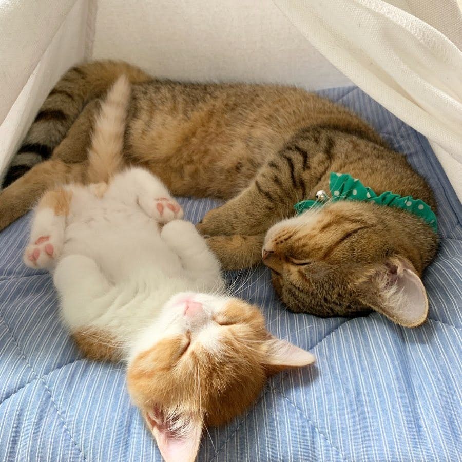 ▼茶太和茶葉雖然相差6個月大,卻是很好的朋友。牠們每天膩在一起,連睡覺的時候都頭挨著頭。不過茶太的睡覺姿勢還是那麼特別~