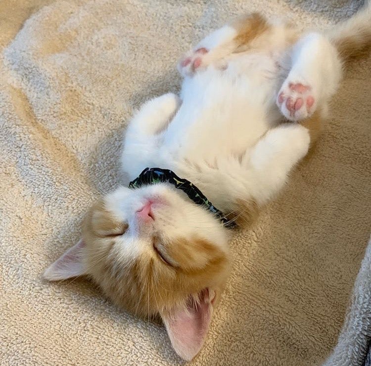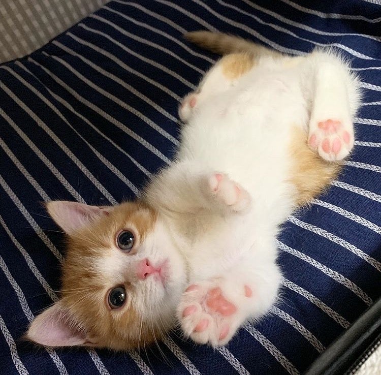 ▼幾個月前,主人又養了一隻叫「茶太」的曼赤肯貓。茶太剛剛2個月大,正是活潑可愛的時候。大概因為一出生就被人好好愛著,茶太對外界沒有戒心,睡覺時總是像人一樣平躺著,露出軟軟白白的小肚肚。