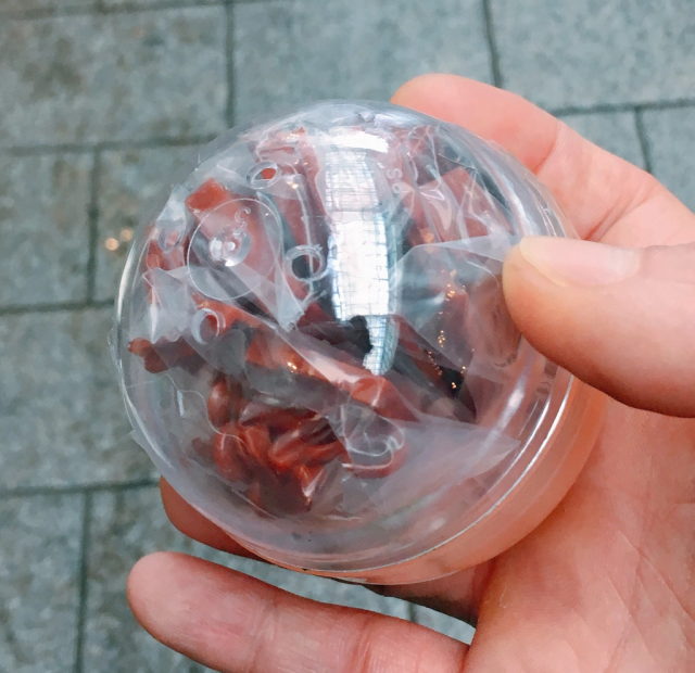 ▼扭出一台空調看一看。感覺這個扭蛋跟普通的扭蛋差不多,裡面塞滿零件,好像很複雜。