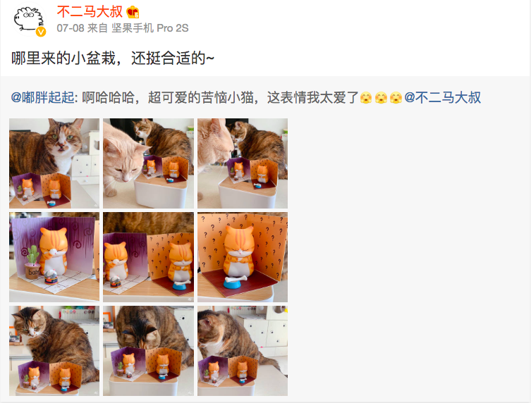 ▼有網友抽到苦惱小貓後,自己找來仙人掌盆栽小道具搭配,連不二馬大叔都覺得這設計很棒:「還挺合適的~」