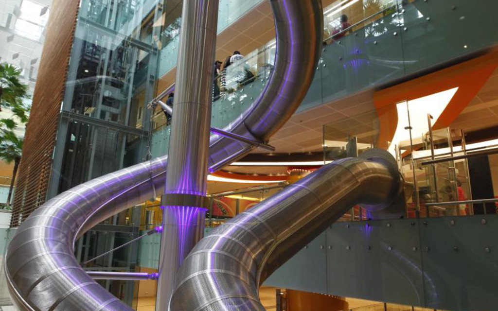 ▼樟宜機場是世界級重要轉機點,為了讓沿途旅客能往來便利、好好休息,機場內也有許多特別的設備,溜滑梯就是其中之一!