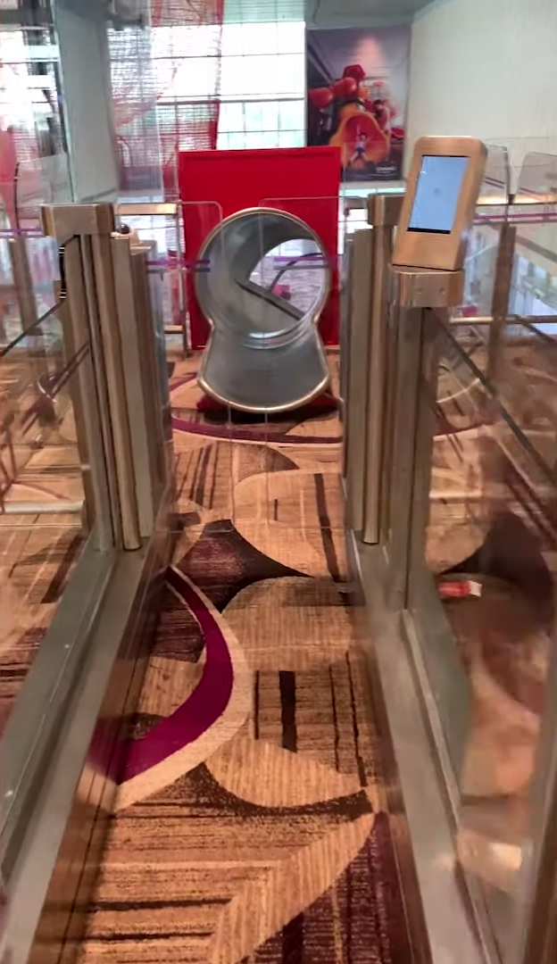 ▼一位旅客分享,當他手持登機證後,就可以刷過一個閘門,乘坐溜滑梯前往登機門!