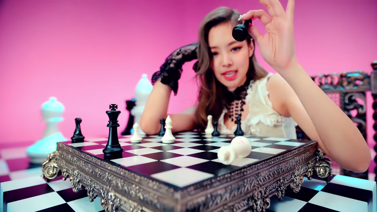▼從畫面兩相對照,可以發現中國肯德基大量運用了《DDU-DU DDU-DU》中「黑白棋」的概念。(上圖:Blackpink、下圖:肯德基)