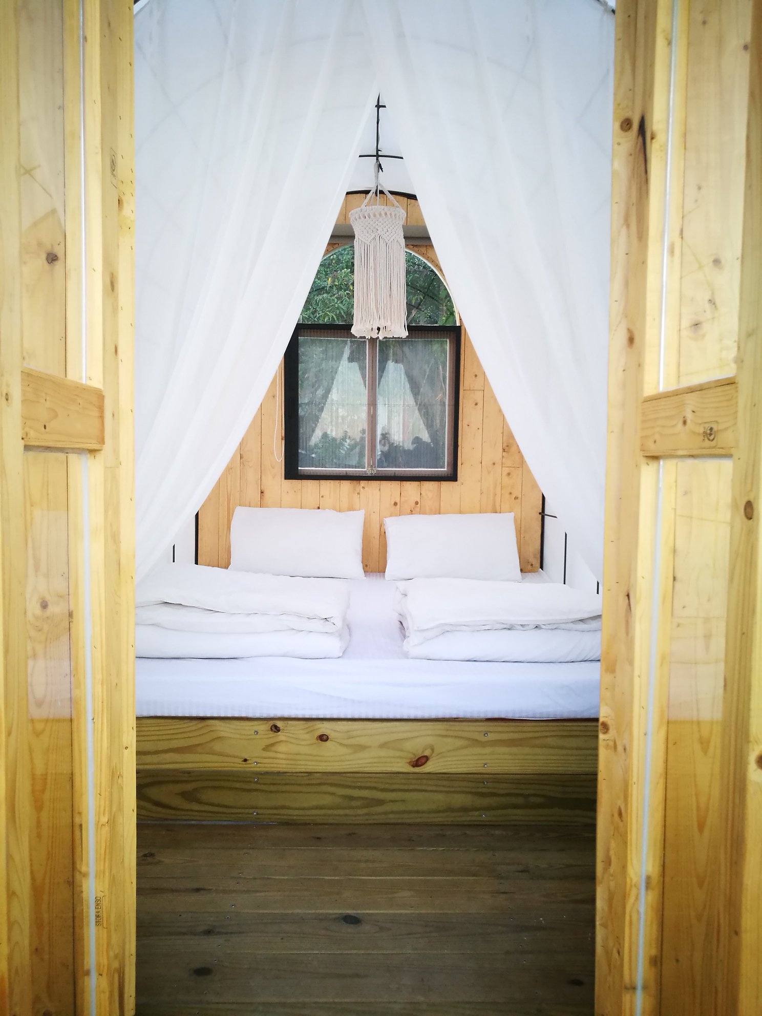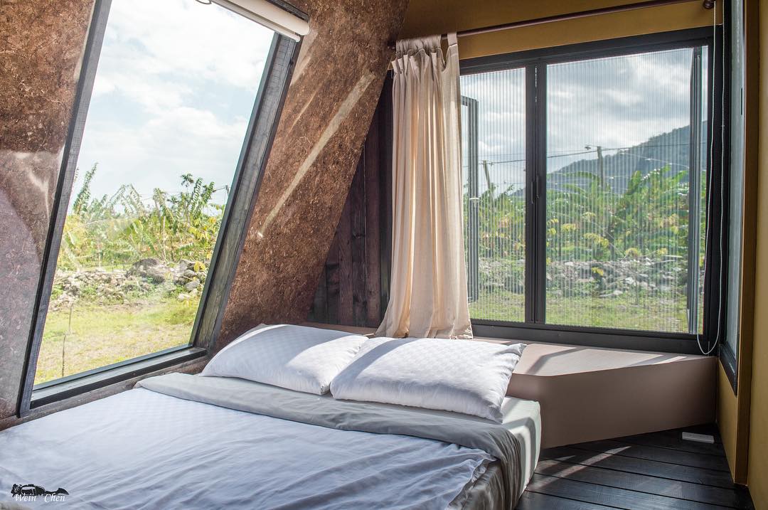 ▼舒適的雙人床鋪緊靠著斜開天窗,讓你一早被舒服的陽光曬醒,天窗可以開啟,不僅好拍也很貼近大自然生活!(兩人入住1800一晚)