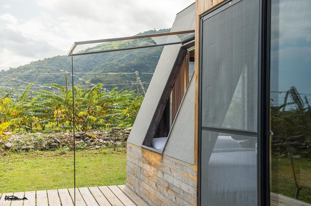 ▼原本這塊露營區只是一片荒地,經過老闆和天晴民宿老闆一起努力整治後,目前已有兩座Tiny House露營車以及五座火金姑帳篷,其中露營車「潑猴二號」是老闆花費一個多月的結晶,從鋼構骨架、原木壁板、衛浴,到水電、裝潢、傢俱等等,所有一切都是老闆親自建造出來的。