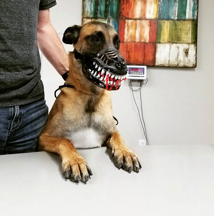 ▼戴上了這款嘴套之後,狗狗瞬間看起來就像是「惡靈古堡」裡面的怪物!