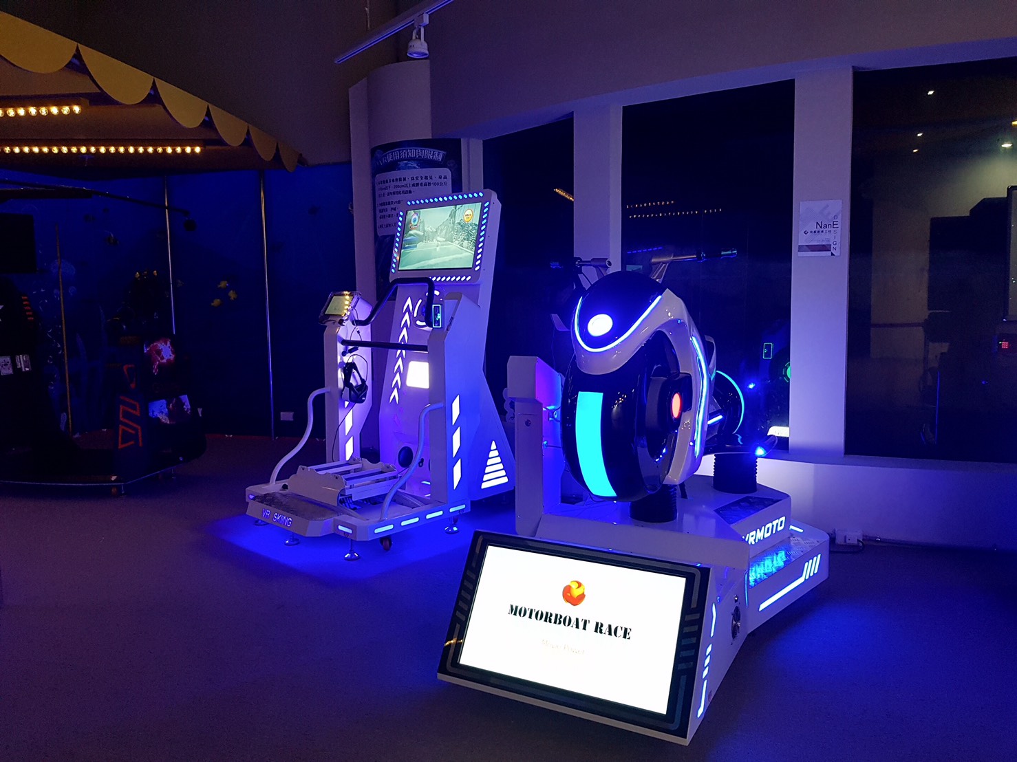 ▼此外,館內還有許多運用VR設備,能讓使用者體驗虛擬實境的互動遊戲,包括滑雪、划船、衝浪、水上機車等豐富的設施。