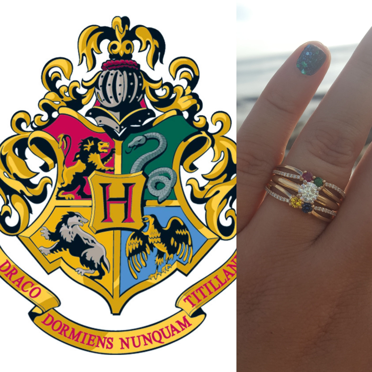 ▼Katiemack777的男友就很清楚知道女友有多愛哈利波特,於是他連求婚戒指也特別客製,除了一定要有的鑽石之外,居然還多加了代表霍格華茲四學院(葛來分多、史萊哲林、赫夫帕夫、雷文克)的元素!