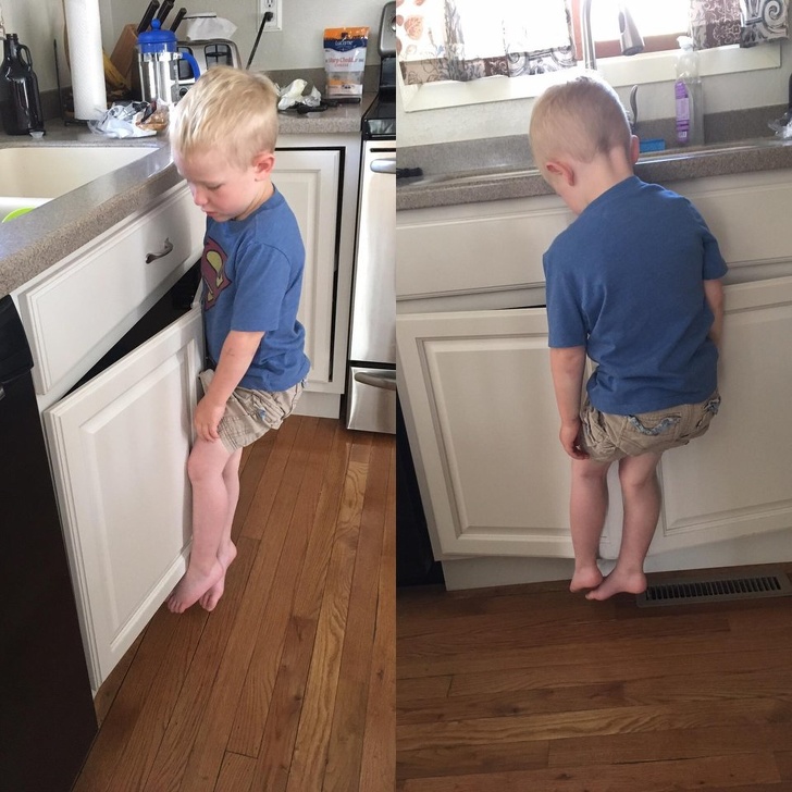 ▼兒子將廚房弄得一團糟之後,這是他一臉「你先聽我解釋」的表情。