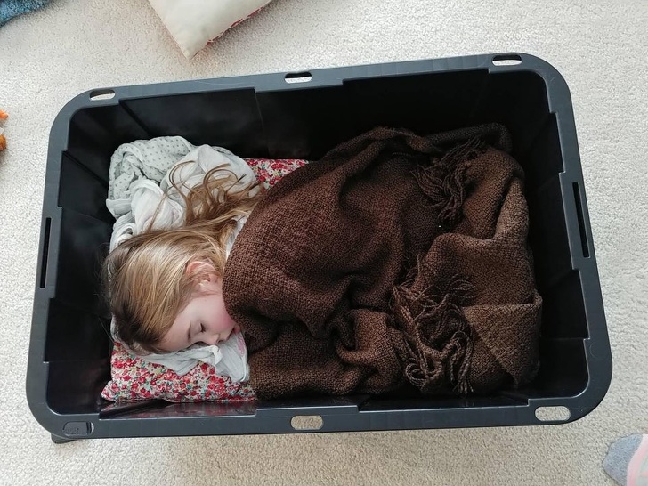 ▼女兒只要有這個在好市多購買的盒子,無論去到哪裡都可以入睡!