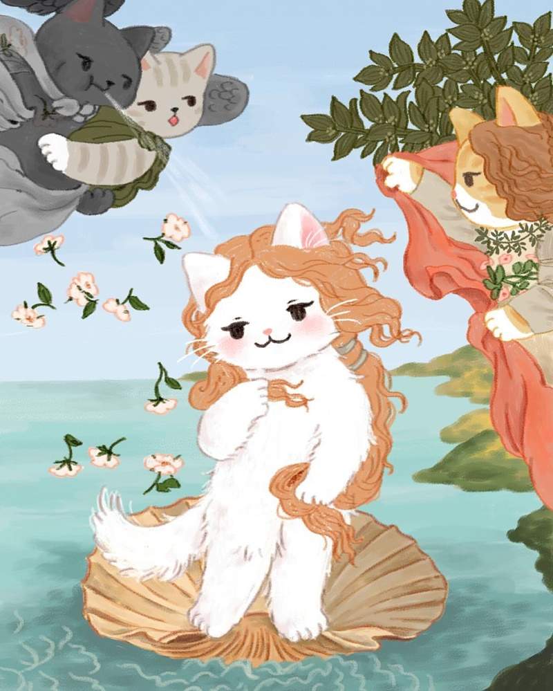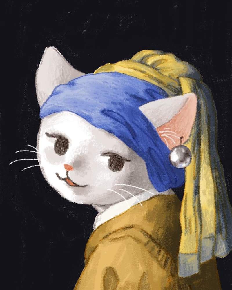 2019年07月18日藝術家很喜歡以神話人物或歷史事件為靈感創作新的作品。二次創作能賦予經典全新的意義。韓國畫家융잡화점(@yoong7)筆觸細膩、獨具匠心。她將世界名畫中的主角都換成了貓咪,一起來看看不同風格的喵星人吧。