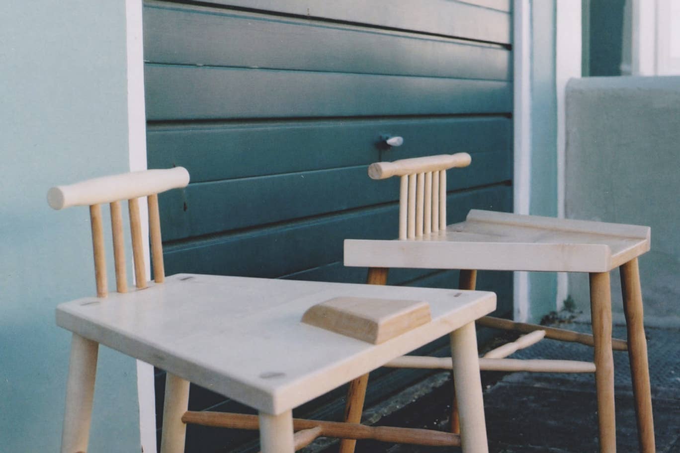 ▼Laila設計的椅子有2種款式,一張是給女生張大腿坐下,另一張則是男生坐下去會縮起來的椅子。