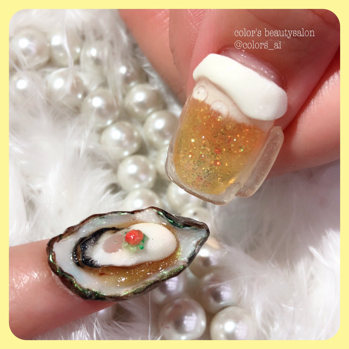 ▼他表示,因為即將要去盛產牡蠣的廣島旅遊,實在太嗨了所以忍不住做出了這組立體鮮蚵美甲。他還跟客人做的啤酒美甲做搭配,根本變成大叔在開趴體XD。