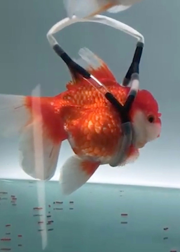 金魚出狀況只能倒著游 暖心主人特製「水中輪椅」讓牠呆萌漂