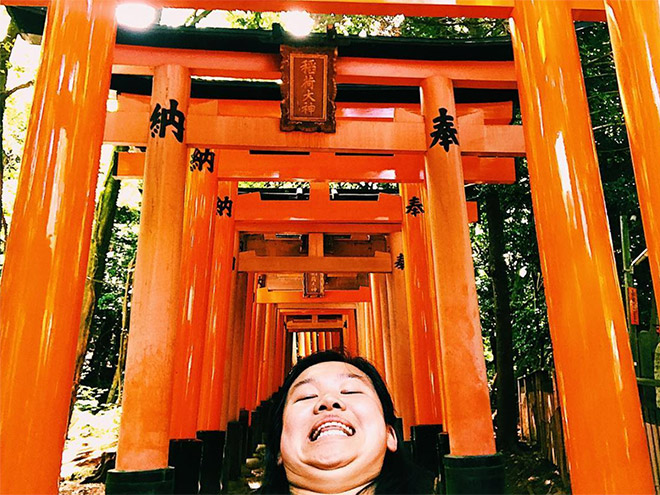 ▼Michelle到世界各地旅行,來到著名的景點,她不會拗造型拍美照,而是故意後仰、低頭,擠出雙下巴,然後拍出一張張醜照。