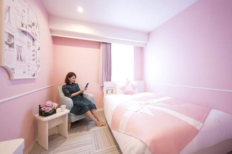 ▼飯店最上層是專為少女心十足的女孩設計的樓層,統一以粉紅色為主。進入房間後,就像來到了粉紅色的世界,心情都變得明亮了。
