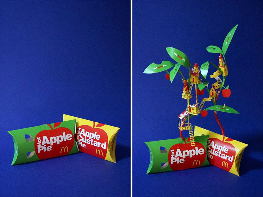 原來廢棄的紙盒還能這樣用,藝術家果然不一般。以後再扔掉商品包裝,應該會覺得很可惜吧,因為在藝術家眼裡,它們都是很棒的藝術材料啊。