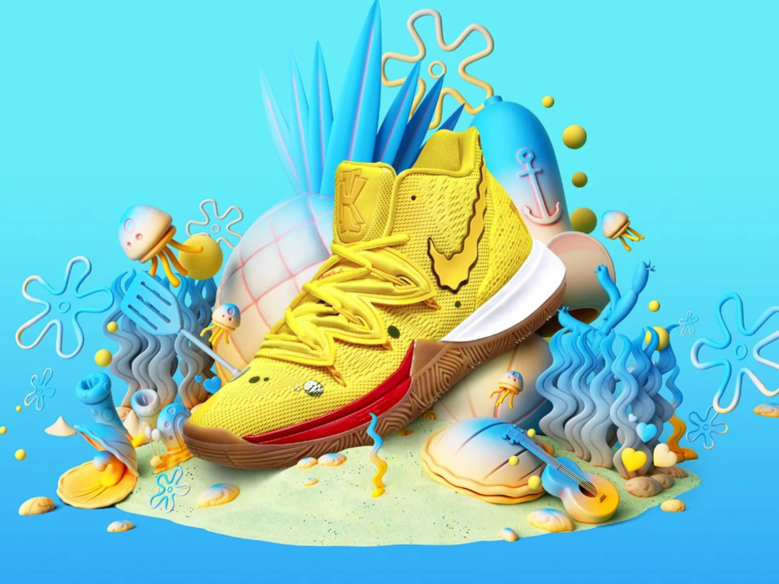 ▼Nike Kyrie 5 結合了海綿寶寶元素,發表了全新的鞋款!在可愛的設計公開後,馬上就獲得超高討論度。