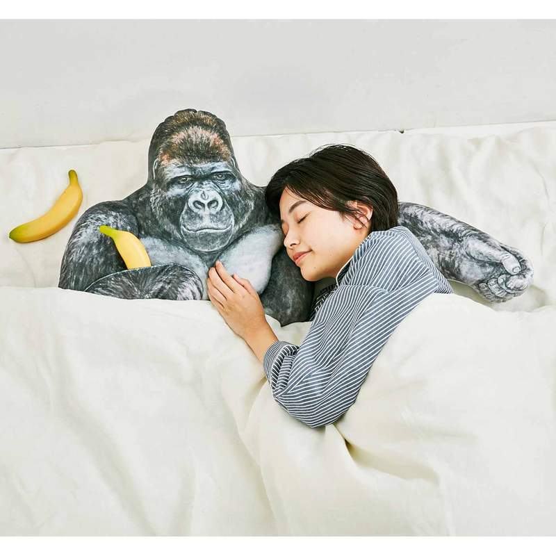 シャバーニ是人氣超夯的動物明星,印有牠圖案的商品一向賣得很好。這次推出的抱枕,應該也會引發搶購熱潮。睡在大猩猩的懷裡,真是奇異又夢幻的體驗啊~