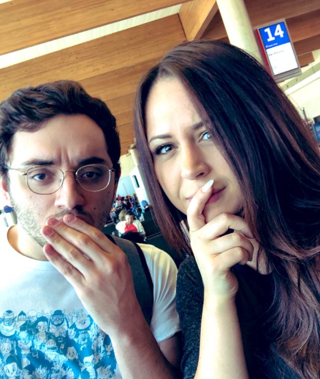 ▼下飛機後,潔西卡也開心地找瑪利歐拍照紀念,看到他們人手一袋Switch禮物袋,實在是太羨慕了啦~~~~
