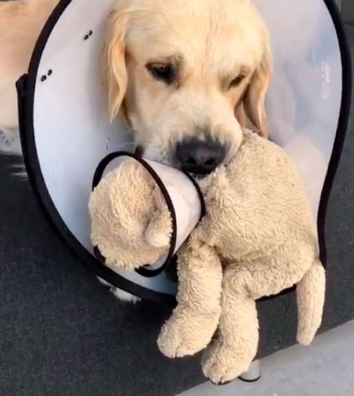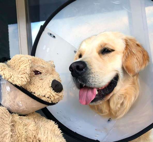 金金術後戴頸圈好低落 看到「最好朋友也戴」笑開懷:它跟我一樣捏~