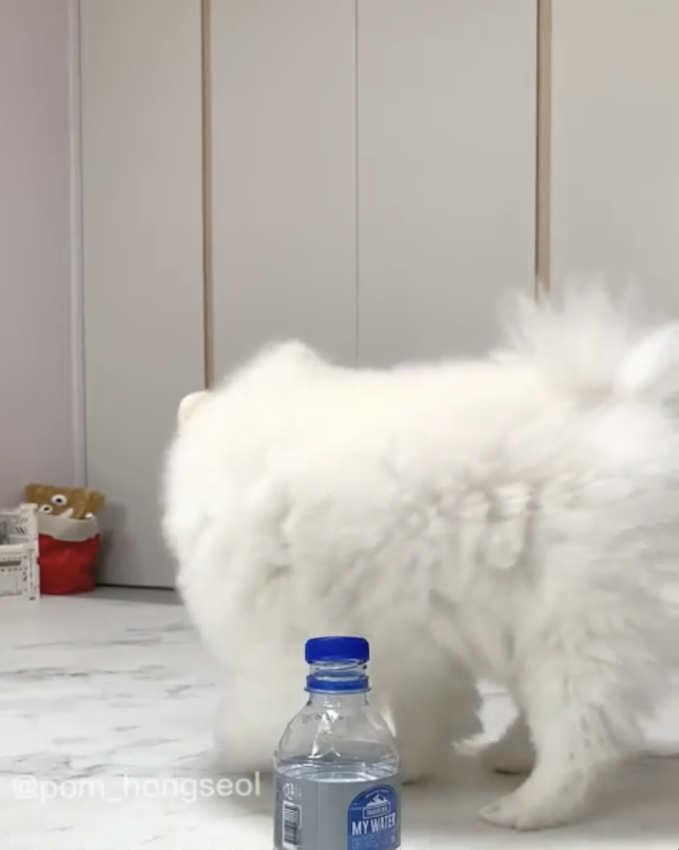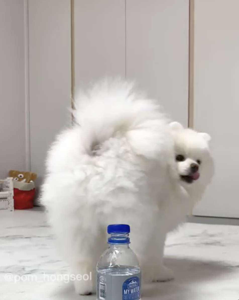 史上最療癒瓶蓋挑戰!小博美「呆萌轉圈」沒踢倒 下秒出大絕:快誇我~