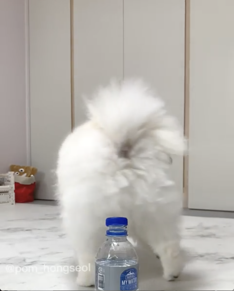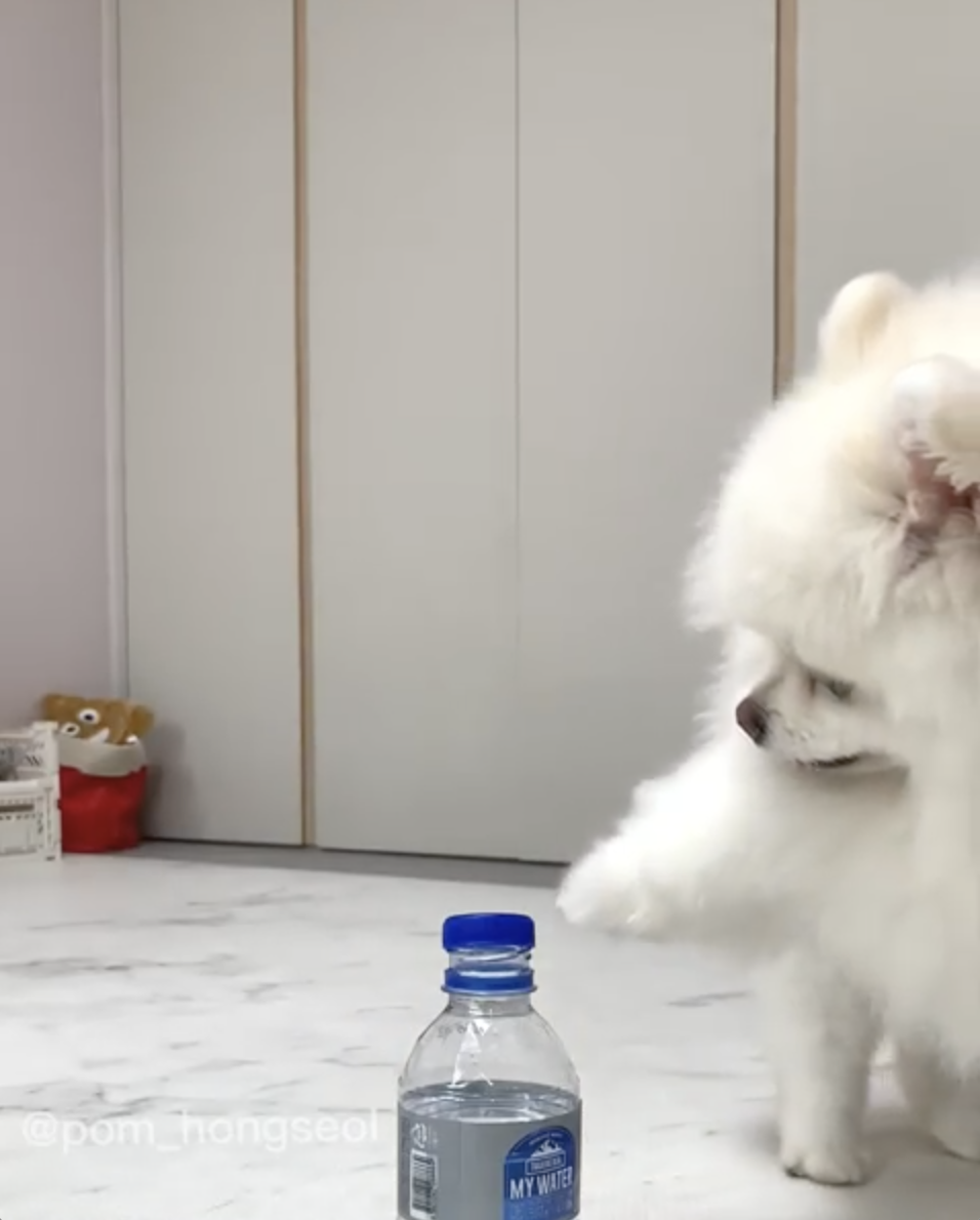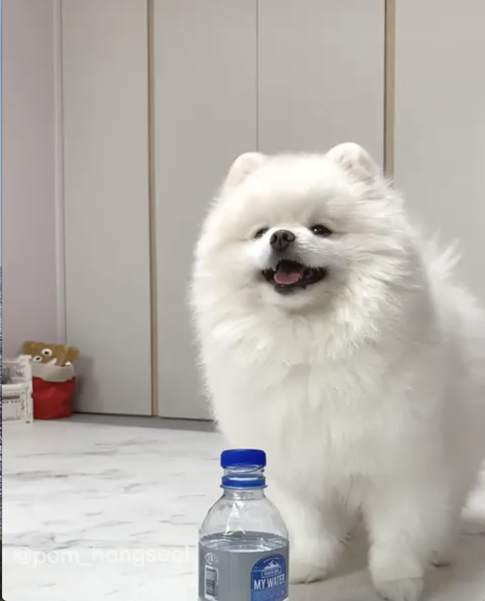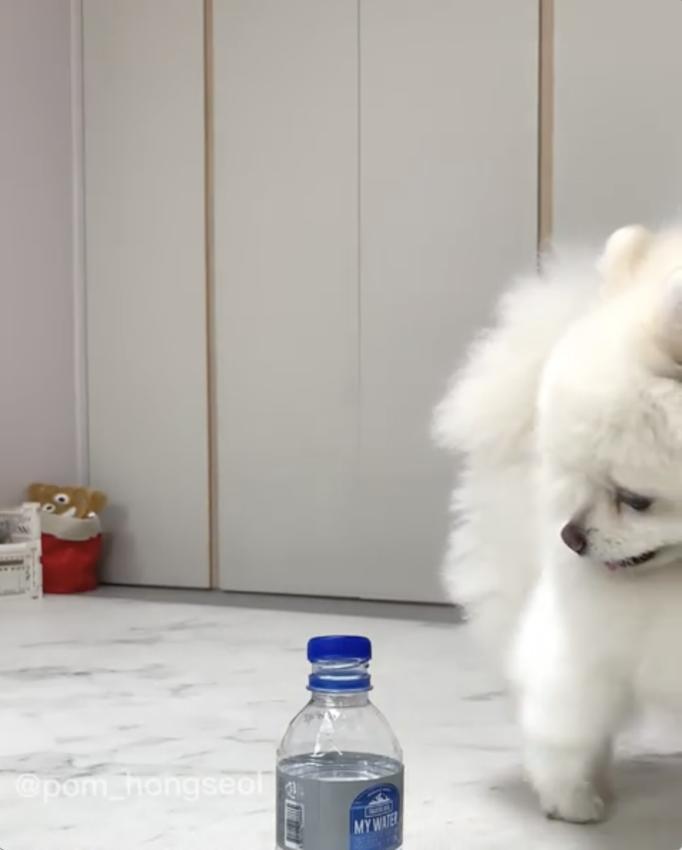 唉唷,這隻小博美真的太可愛惹啦~尤其拍掉瓶蓋之後那張驕傲的臉實在好好笑,一副「我真的太強惹」的臉,看到那張臉真的忍不住會想餵他吃肉乾啊XD!還想看更多這隻小博美的,可以追蹤「@pom_hongseol」的IG喔~